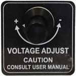 Located below the generator controller, the Voltage Adjust knob can be used to adjust output voltage. This adjustment may be necessary to compensate for voltage drop caused by long cable runs between the generator and the electrical load.