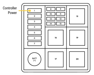 Ensure the controller power switch below the controller is turned on. Ensure the control power disconnect switch on the Check the fuse that provides power to the generator controller (Position 1) in the Verify that the battery connections are secure and that the battery voltage is Check the corresponding wire and terminal connections at the back of the fuse panel. Check the battery power connections at the back of the generator controller, terminals 2 |